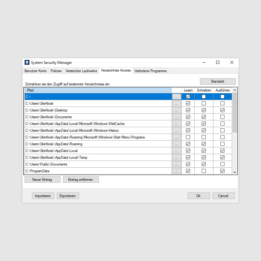 SiteKiosk Online beinhaltet viele weitere Schutzfunktionen, welche die Sicherheit Ihrer Anwendungen oder Ihres Unternehmensintranets gewährleistet.