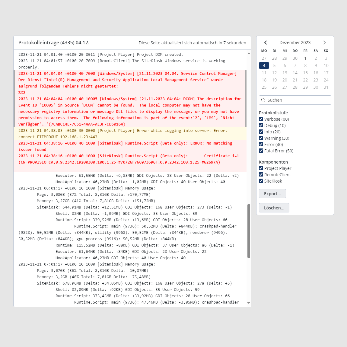 Sie können SiteKiosk Online bequem aus der Ferne verwalten, Sicherheitseinstellungen aktualisieren und Patches anwenden. Damit wird sichergestellt, dass Ihre Kioskgeräte geschützt bleiben, auch wenn Sie nicht vor Ort sind.