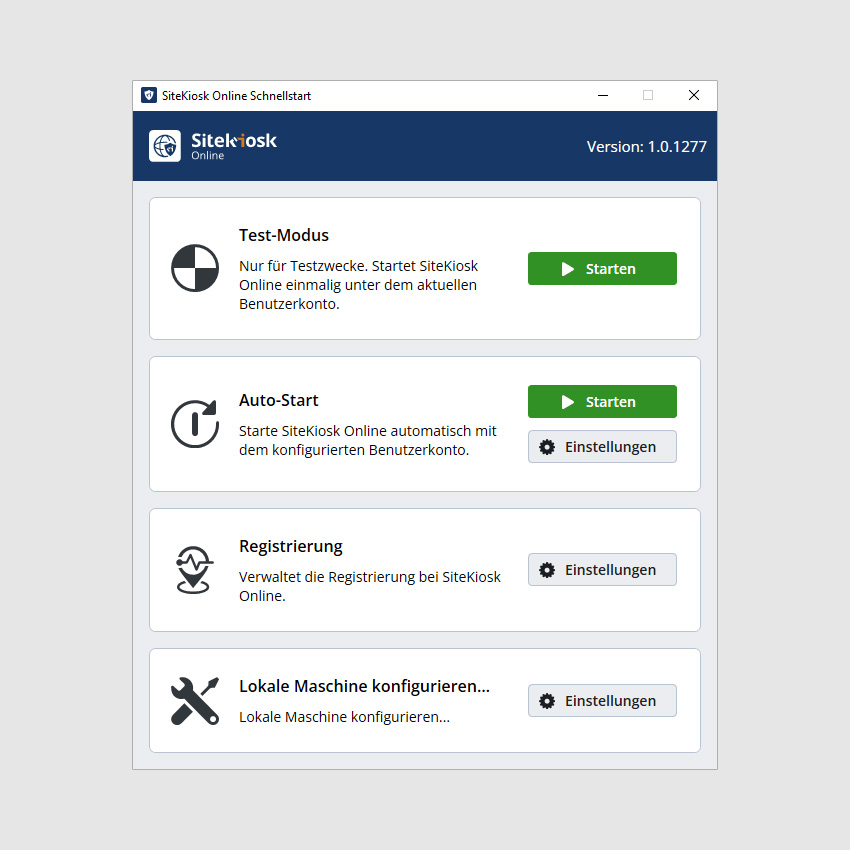 SiteKiosk Online schützt zuverlässig unbeaufsichtigte Digital Signage Displays und öffentliche Selbstbedienungsterminals. Zugriffe auf das Betriebssystem und auf Webinhalte werden aktiv eingeschränkt und ermöglichen einen ausfallsicheren Betrieb von Windows- und Android-Geräten. Das integrierte Konfigurations-Tool ermöglicht mühelose Anpassungen ohne Programmierkenntnisse.