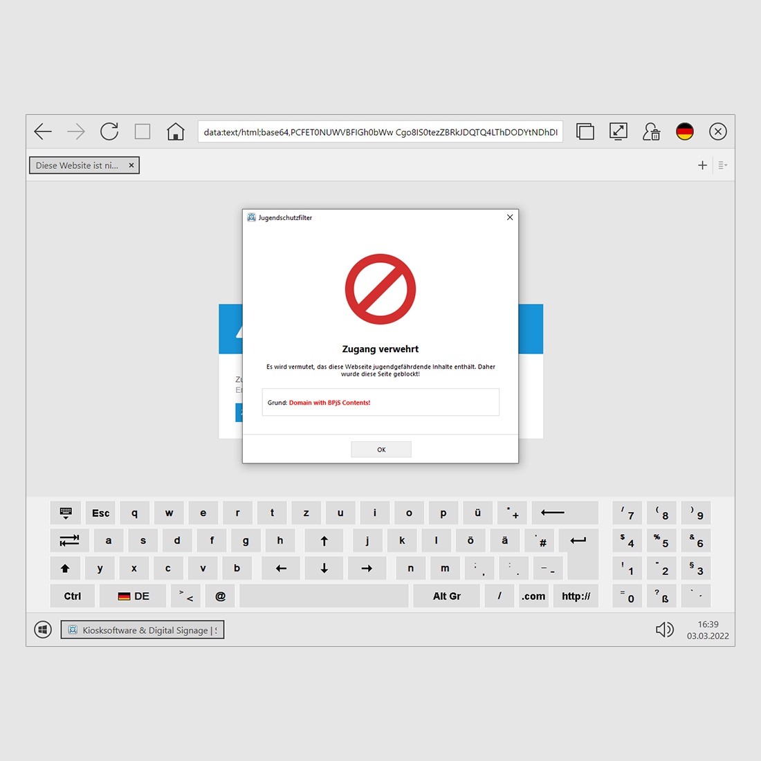 SiteKiosk Online kann Benutzereingaben filtern und potenziell kritische Tastenkombinationen (z.B. Strg-Alt-Entf) oder externe Hardware (z.B. USB-Stick) blockieren.