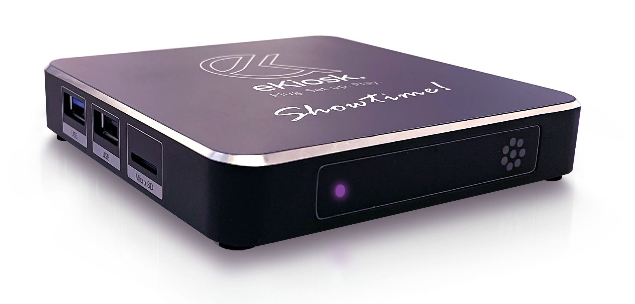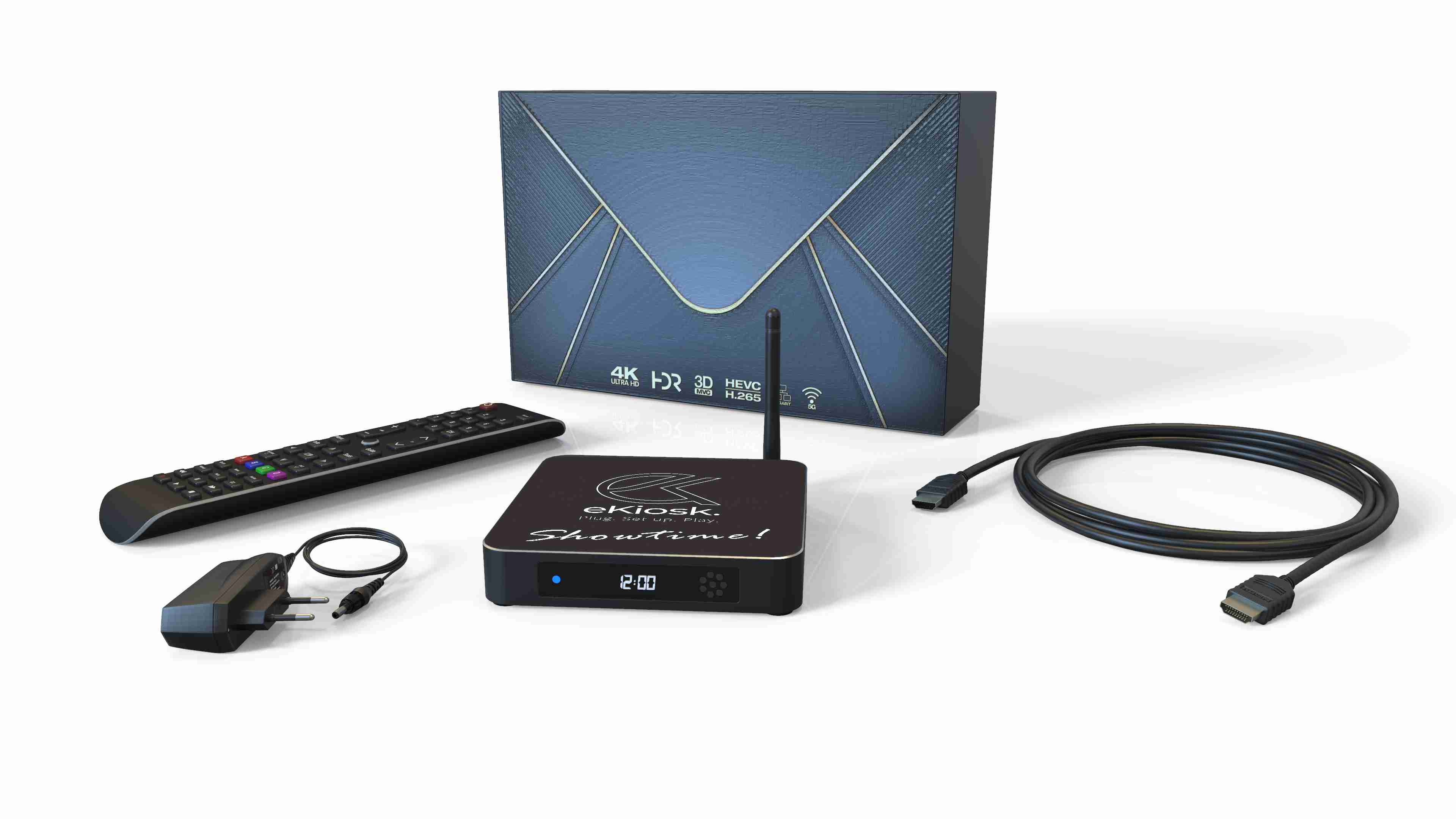 The widely available player from kiosk manufacturer eKiosk has its own app store where applications from established software partners are available. The SiteKiosk kiosk software is pre-installed by default. In addition to image and video files, the media player can display HTML5 pages with embedded videos, slideshows, Javascript and much more.