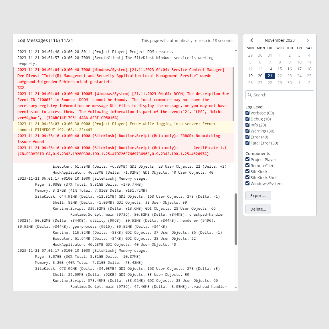 SiteKiosk Online allows administrators to set session timeouts, automatically logging out users after a defined period of inactivity. This prevents unauthorized access to open sessions and helps protect user privacy.