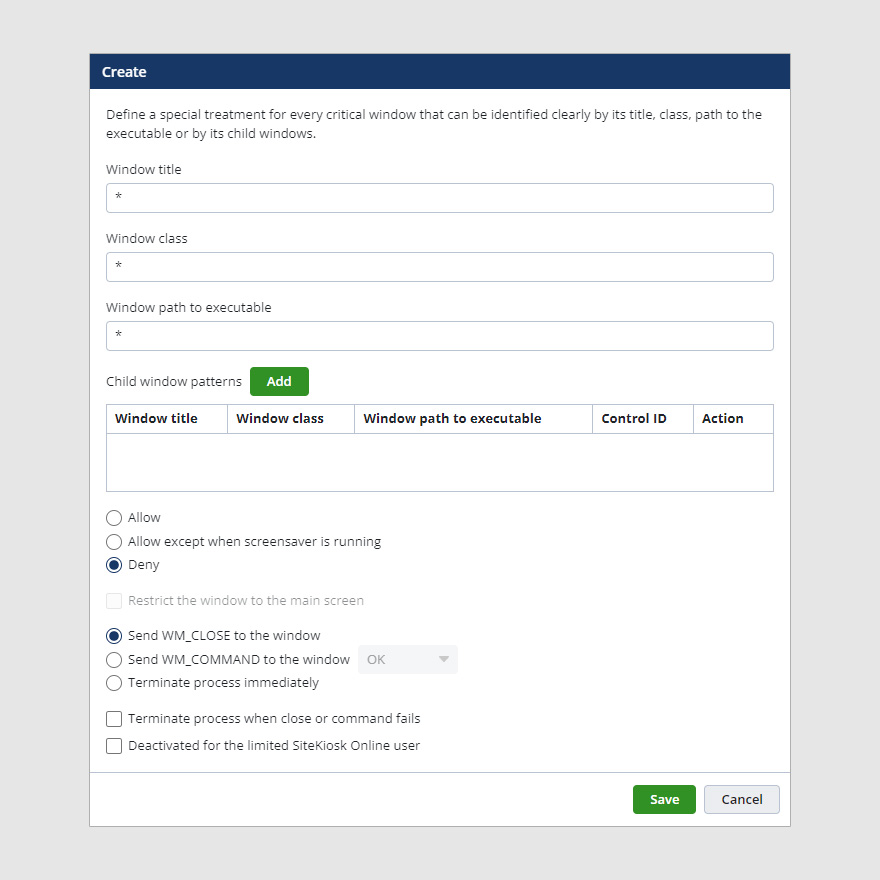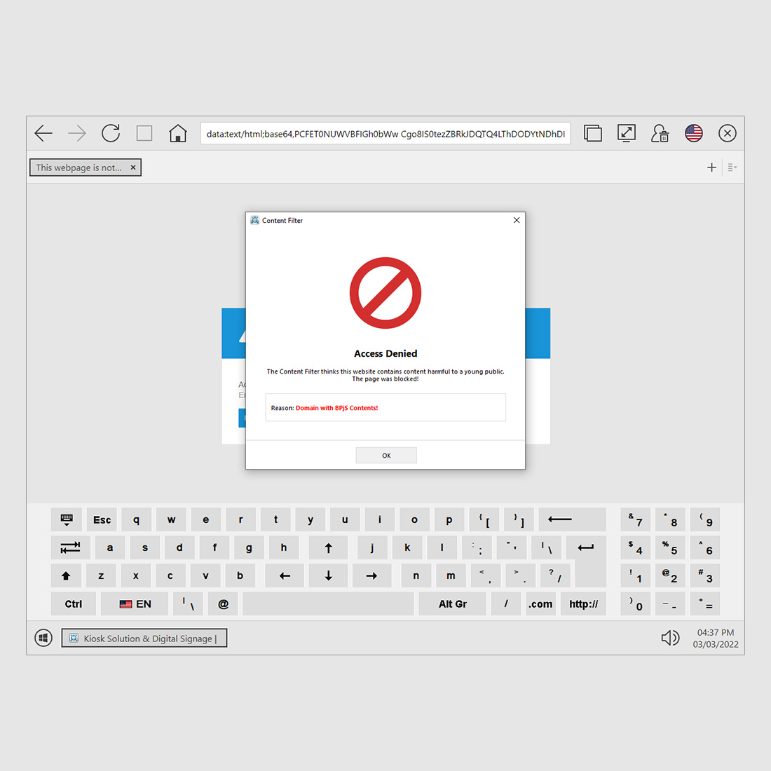 For added security, SiteKiosk Online replaces the Windows shell with a secure SiteKiosk Online shell. Access to the operating system and the normal browser is blocked to ensure the tamper proof operation of the system.