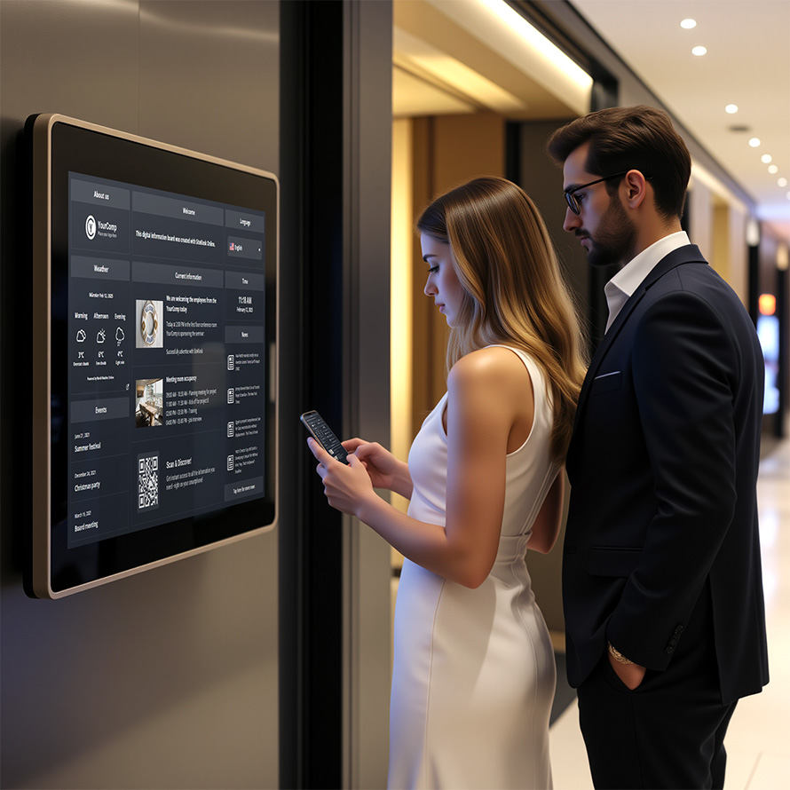 Content from digital signage and information boards can be accessed remotely on smartphones, tablets, or PCs via PWA, ensuring flexible, location-independent use.